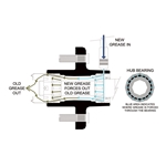 The fully assembled pre-lubed Ultra-Pack unit features a greasing system that lets you repack bearings without removing the hub so blowing out the rear seal is no longer a concern. This new proprietary system allows you to quickly and easily insert fresh grease through the zerk fitting. Grease flows through both the inner and outer bearing, pushing old grease out the front for a complete repack. Disassembly is not required. Simply hook grease gun to the zerk fitting to purge contaminated grease. Upgraded triple-lip, spring-loaded seal protects bearings from corrosion. High-speed electro-plated construction resists rust. Includes hub with bearings, seal, grease cap with zerk, stud nuts and dust cap installation tool. Works with your existing spindle.