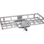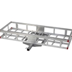 60" L x 22.5" W x 8" H Ultra-Tow aluminum hitch cargo carrier platform provides extra cargo space on the exterior of your vehicle that is ideal for transporting up to 500-lbs. of lawn equipment, camping gear, generators and much more. Fits all standard Class III and Class IV 2" receivers. Some assembly required; includes hardware.