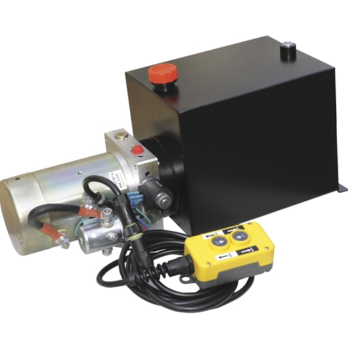 - 12-volt, 2 HP single-acting power unit for dump trailers