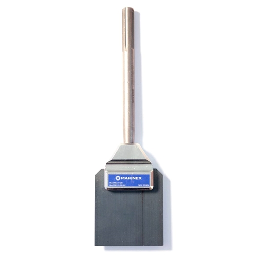 The Makinex tile smasher head for SDS Max rotary hammers is designed for maximum longevity by protecting crucial components. This tile smasher head is ideal for removing tile, thinset, mortar, linoleum, and adhesive, or for general purple floor scraping. The head is made of high tensile steel, with a hardened steel shank, and recessed blade bolts to prevent loosening over time. The included blade has a chamfered cutting edge, ensuring efficient removal of material. The SDS Max tile smasher works with handheld and cordless breakers, ranging from 8.8 to 22 lb. in weight.