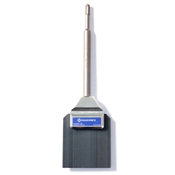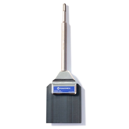 The Makinex tile smasher head for SDS Plus rotary hammers is designed for maximum longevity by protecting crucial components. This tile smasher head is ideal for removing tile, thinset, mortar, linoleum, and adhesive, or for general purple floor scraping. The head is made of high tensile steel, with a hardened steel shank, and recessed blade bolts to prevent loosening over time. The included blade has a chamfered cutting edge, ensuring efficient removal of material. The SDS Plus tile smasher works with handheld and cordless breakers, ranging from 8.8 to 22 lb. in weight.