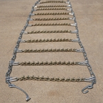 - Pair of rear tire chains with ladder-style design and hardened v-bar links