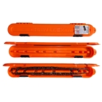 The orange Chain Locker storage case is simple and versatile solution for organizing and storing multiple chainsaw chains up to 20 In. long. This case features multiple tabs for securely storing chains of various lengths, keeping each chain taut to reduce tangling. With its two-inch depth, the Chain Locker can stack up to eight chains, and even store tools like t-wrenches and files. The Chain Locker is also proudly made in the USA, and built tough with UV enhanced polypropylene, and stainless steel pins on the hinges and latches.