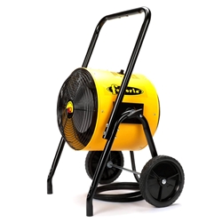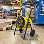 The Fostoria portable electric Salamander provides 34,130 BTU/hr of fan-forced, all electrical heating. This single phase, 10 kW portable heater features an onboard thermostat with 40 to 100 degree Fahrenheit adjustment, with a 40 degree temperature rise for air intake. The heater is easily portable, with an easy to grip handle, 10-In. wheels, and safety screens over the intake and output openings to keep the user safe. The heating elements have a finned, tubular design for long service life, and a high-limit thermal cutout switch with automatic reset for added safety. If no heat is needed, the heater can operate on the fan only with the same 800 CFM airflow that’s used for heating. This heater also includes a pre-wired straight blade range plug for 240V outlets.