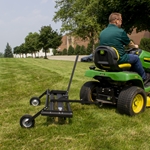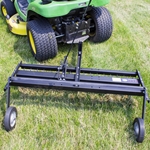 This 46 in. tow behind tine rake dethatcher is the ultimate spring clean-up tool, and it can be used with virtually any mower. This tow-behind model attaches to the mower’s hitch with a single pin, and can be raised or lowered with the included lever. Use the rake for the first spring mowing to remove thatch, embedded leaves, and debris. The patented tines lift thatch without damaging healthy turfgrass and, at the same time, comb matted grass, giving the lawn a clean, hand-raked appearance. After a hot summer, use the tine rake dethatcher to surface aerate the soil, promoting root development and making room for thicker turfgrass. Use the dethatcher during seeding operations to rake in seeds and accelerate germination. Finally, use the tine rake dethatcher for the last fall mowing, leaving a picture-perfect, clean lawn. Whether you mulch or bag, the tine rake dethatcher can be used throughout the growing season to control thatch accumulation and reduce the chance of turf disease.