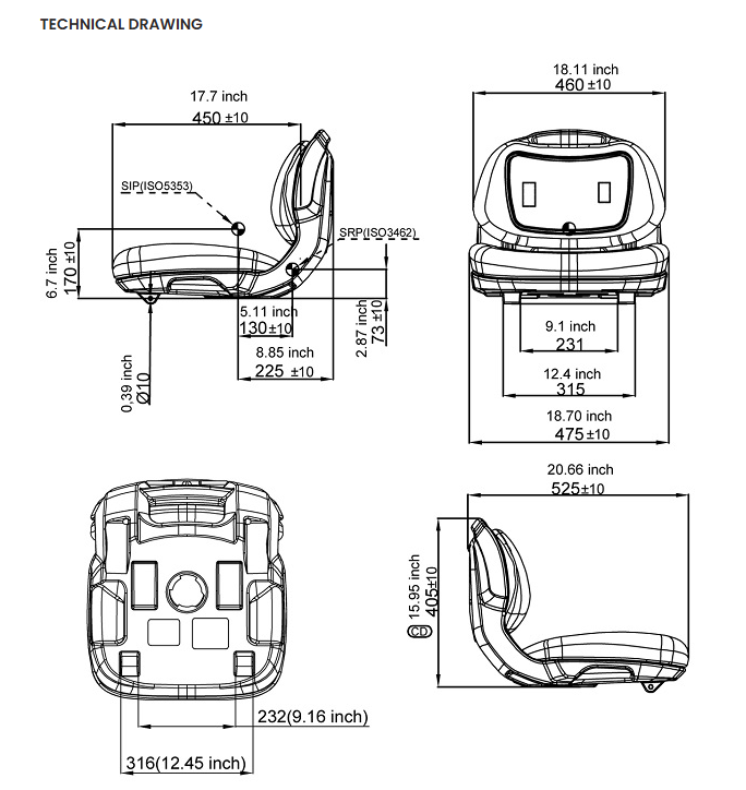 - Seat dimensions: 18.11 in. x 15.95 in. (W x H)