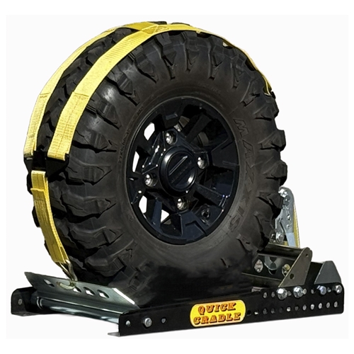 The Quick Cradle wheel strap basket pack secures tires of any size with a tight connection. These strap baskets feature a metal plate that conforms to the shape of the tire, with adjustable straps to provide tight contact for standard tires, as well as small tires for ATVs, UTVs, and more. The metal plates are also great for tires with deep treads, and won’t simply fall into the gaps like typical strap baskets.