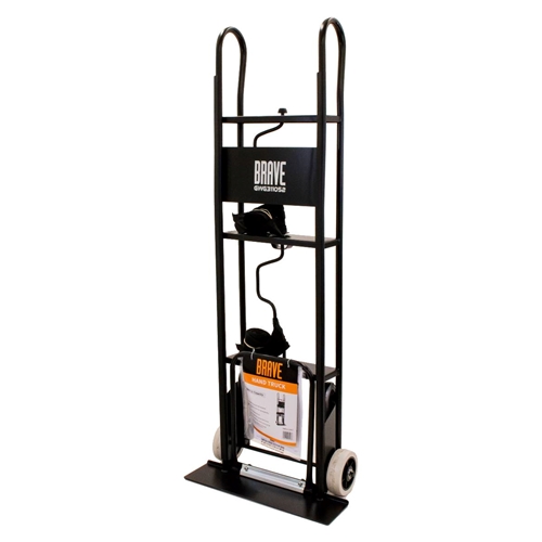 The Brave appliance cart is great for transporting appliances, safes, and heavy furniture with ease, even up stairs. This appliance cart moves up to 800 lb. loads, and rolls on smooth-riding solid rubber tires that will never go flat. The heavy gauge steel frame is completely welded, and features built-in stair skids to easily move heavy cargo up stairs. This cart also features a fold-out box lifter, making it easier to move heavy objects without putting strain on the operator.