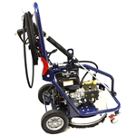 The Makinex dual pressure washer is powered by a reliable Vanguard 25V3 engine, providing excellent cleaning power and jobsite efficiency. This combination rotary cleaner and pressure washer eliminates the need for having two machines, and can switch between the two functions while the machine is still running. The rotary cleaner’s deck is 21 In. wide, with a 50 ft. long high-pressure hose with want for busting tough stains. The heavy duty frame is compact, with a foldable handle and front locking castor wheels for ease of transport.