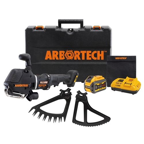 The Arbortech AllSaw landscaping kit delivers fast, efficient cutting for groundskeeping and landscaping applications. This kit includes the AllSaw, powered by the DEWALT® 60V MAX FLEXVOLT® battery system, delivering high-performance cutting with a pair of specialized blades. The XL general-purpose blade is excellent for heavy-duty applications, with tungsten carbide teeth for cutting through wood, limestone, and masonry. The turf blade is excellent for groundskeeping, turf management, and irrigation, cutting cleanly and consistently up to 6-3/4 in. deep. This cordless kit provides professional results just about anywhere, faster than manual tools and with far less strain on the operator.