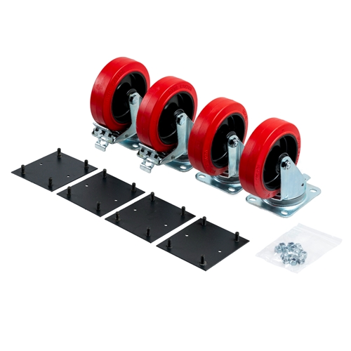 The Armorgard 6 in. heavy-duty caster kit upgrades SiteBoss chests and piano boxes with added mobility. This kit includes two standard swivel casters and two casters with brakes to add stability, all with rubber tires and solid, pressed-steel centers. Each caster has a 770 lb. weight capacity, totaling 3,080 lb. to accommodate loaded job boxes.