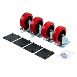 - Includes two standard casters, two casters with brakes, four backing plates, and hardware