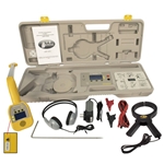 - Includes case with transmitter, receiver wand, direct connect leads, inductive clamp, ground stake, AC adapter, and stereo headset